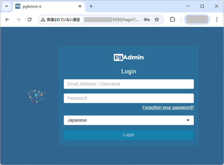 - pgAdmin4コマンドでpgAdmin4を実行します。