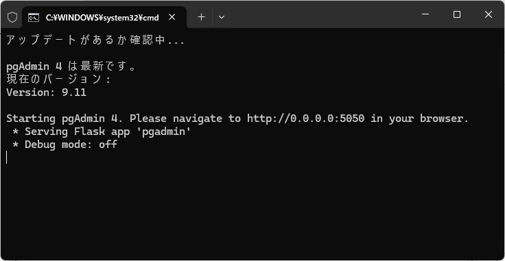 echo pgAdmin 4 は最新です。